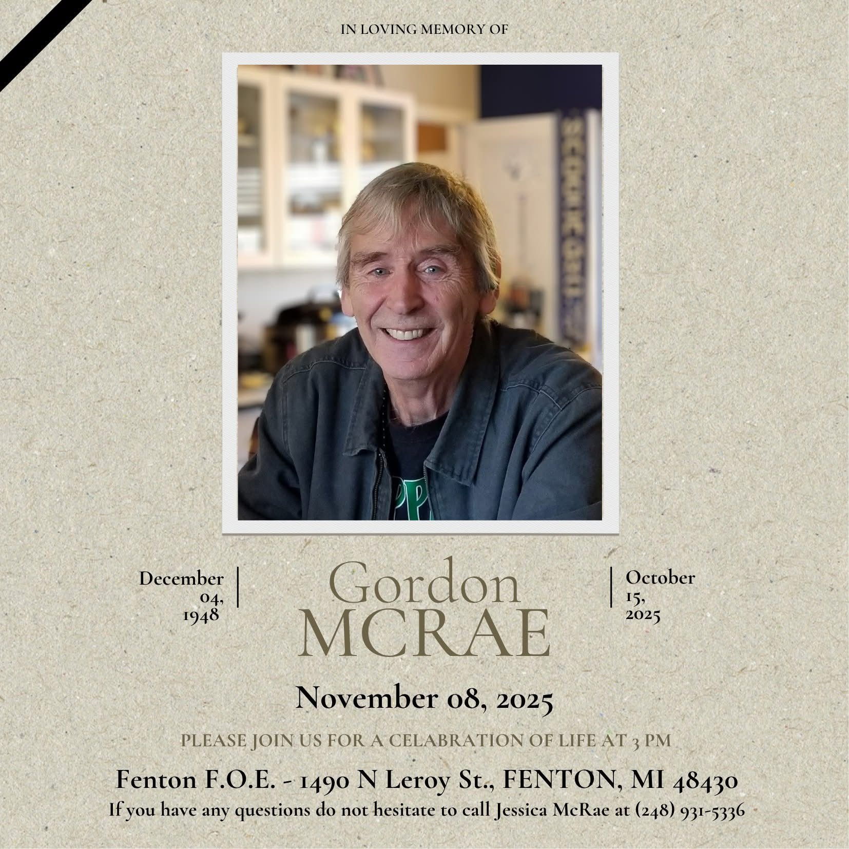 Celebration of Life for Gordon McRae Published on Friday, October 31, 2025